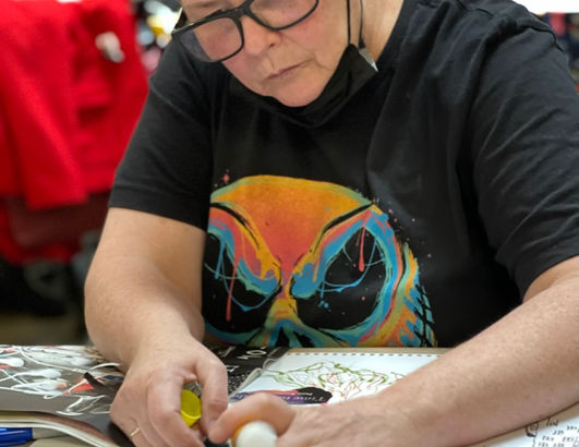 Every session ends with something made: a shared artwork, individual pieces, or a collective image that captures what the group brought into the room.